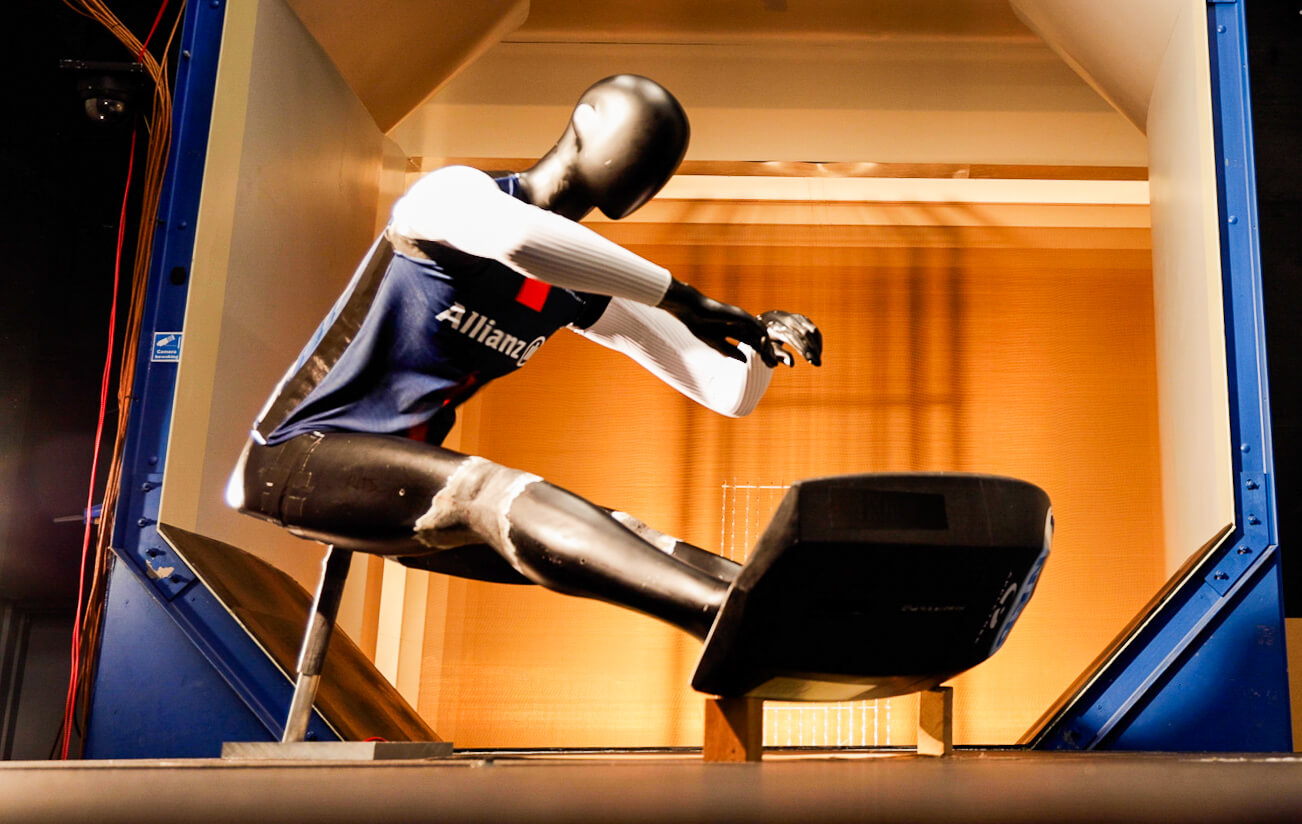 Bij TU Delft zetten onderzoekers technologie in om de prestaties van (top)atleten te verbeteren. Dit doen ze onder andere op het gebied van aerodynamica en hydrodynamica. Door te zorgen voor minder weerstand kunnen sporters efficiënter en beter presteren, dit geldt bijvoorbeeld bij het schaatsen, zwemmen of surfen. ‘In elke sport ervaren atleten lucht- of waterweerstand. Het gros hiervan is drukweerstand; het gevolg van het verschil in druk tussen de voor- en achterkant van een atleet’, legt Andrea Sciacchitano uit, wetenschappelijk directeur van het TU Delft Sports Engineering Institute. ‘Om deze drukweerstand te verminderen, zorgen we voor een gestroomlijnde vorm van de atleet. Bij wielrenners gaat het bijvoorbeeld om de houding op de fiets en om geschikte kleding. Voor het pak bij wielrennen was de structuur van golfballen een interessante inspiratiebron voor ons. De ribbelige structuur van het oppervlak van een golfbal zorgt voor turbulentie rondom de bal, waardoor deze minder weerstand ervaart. Dit principe pasten we ook toe op de sportkleding van wielrenners. Dit werkt echter niet bij alle sporten en op alle plekken op het lichaam, voor het pak bij kitesurfen had mijn collega Wouter Terra een andere aanpak.’