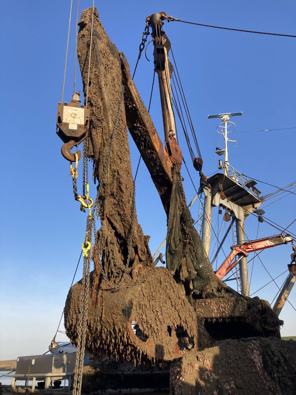 Tijdens de nieuwe expeditie van CleanUpXL takelden de bergers van de Friendship naast meerdere vrachtwagentrailers, veel netten, dakluiken en een boeisteen ook een complete hijskraan uit zee. Deze kraan stond tot 1 januari 1995 op het dek van de Noorse coaster LINITO. Dit vrachtschip kwam die avond tijdens zwaar weer in nood bij Vlieland. Net als 24 jaar later de MSC Zoe, die daardoor 342 containers verloor. Het 68 meter lange schip was stuurloos geraakt, de lading begon te schuiven en het schip maakte zware slagzij. De bemanning kwam veilig van boord, het schip verging nadat het in twee stukken was gebroken. Rijkswaterstaat borg aanwezige gevaarlijke stoffen en de Belgische firma Tijdelijke Vereniging van Bergingswerken claimt in mei 1995 de laatste wrakstukken te hebben geborgen. Maar zoals dat helaas vaak gaat: zeker niet alles. De kraan bleef liggen tot nu, 28 jaar later.