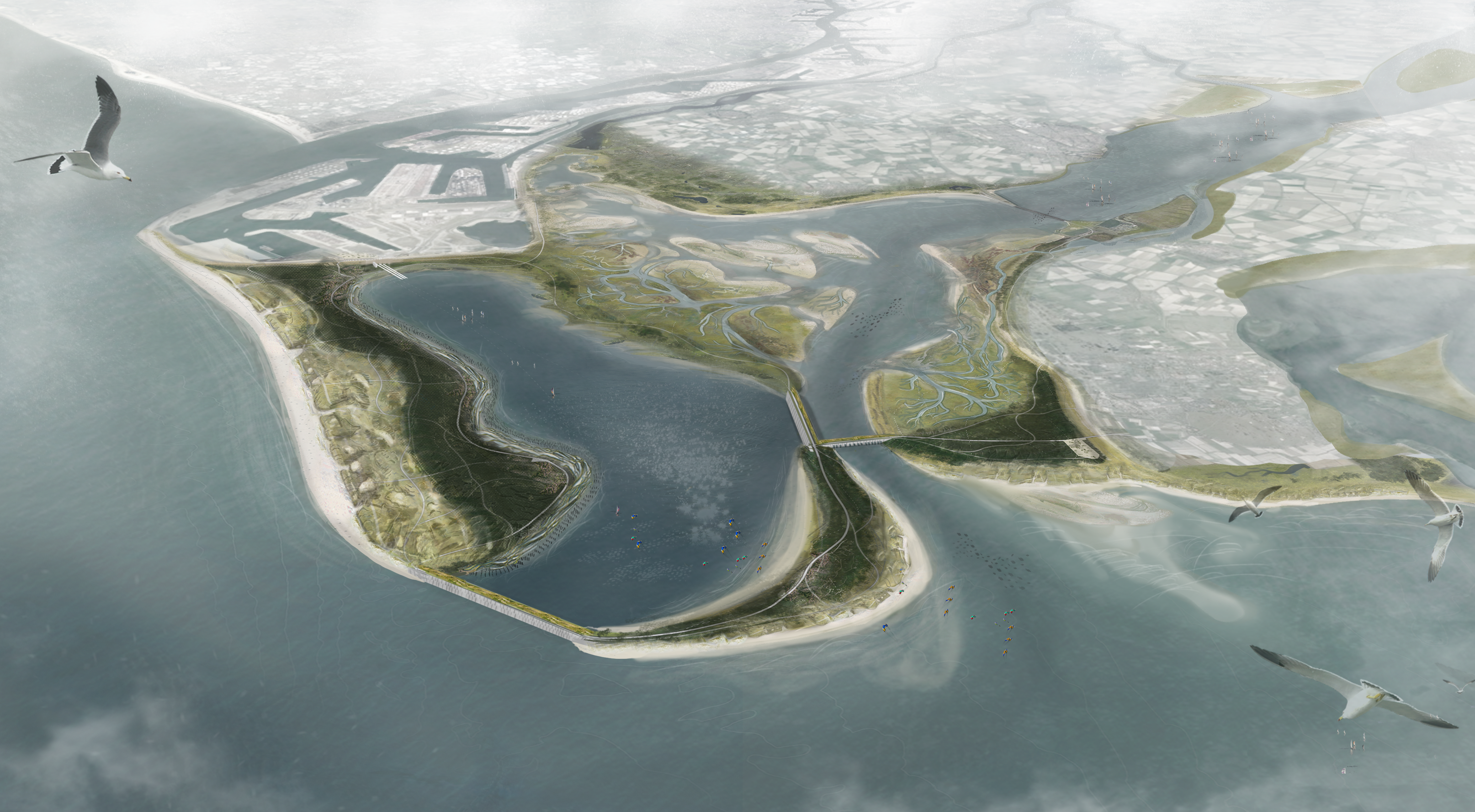 Volgens inrichtingsplan Delta21 komt er aan de monding van het Haringvliet een door duinen omsloten valmeer met een wateroppervlak van 44 vierkante kilometer. In Nederland weten we dat de krachtmeting met de zee grote dimensies vereist. Toch dient dit onderdeel van het plan een ander doel, namelijk de opslag van energie. Al is het valmeer tegelijk integraal verbonden met het tweede planonderdeel: waterveiligheid. En hetzelfde geldt voor het derde planonderdeel: natuurherstel.