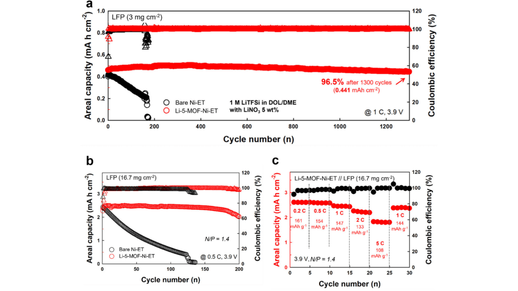 De batterij vertoonde bijna geen degradatie, écht uitzonderlijk voor lithium-metaalbatterijen. © Advanced Materials