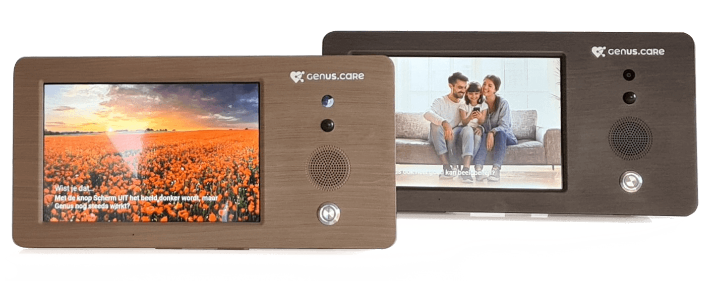 Genus Care lijkt een simpel fotolijstje, maar het is veel meer. Dankzij de sensortechnologie heeft de zorgverlener op elk gewenst moment inzicht in het leefritme van cliënten. Genus alarmeert bij ongewone patronen en maakt contact via beeldbellen en berichten heel eenvoudig. Het is een geavanceerd hulpmiddel voor zorg op afstand en verbinding met de cliënt. Daarmee creëert het rust en vertrouwen voor cliënten, zorgverleners en mantelzorgers.