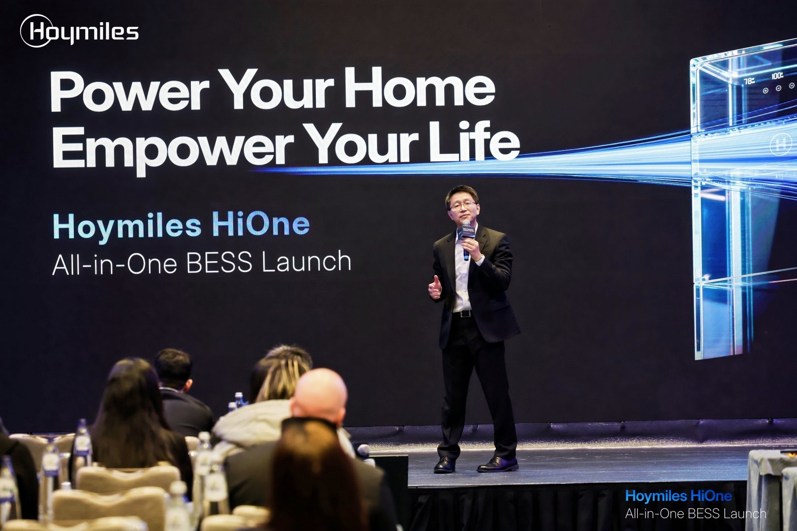 Centraal in het verhaal stond Guy Rong, Vice President van Hoymiles. In zijn openingswoord schetste hij hoe het bedrijf zich ontwikkelt van producent van solar-hardware naar een brede aanbieder van complete energieoplossingen.