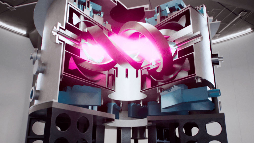 In een stellarator wordt het plasma omsloten door een complex, spiraalvormig magneetveld dat geen elektrische stroom door het plasma zelf vereist. Daardoor is het systeem inherenter stabieler en geschikter voor langdurige operaties.