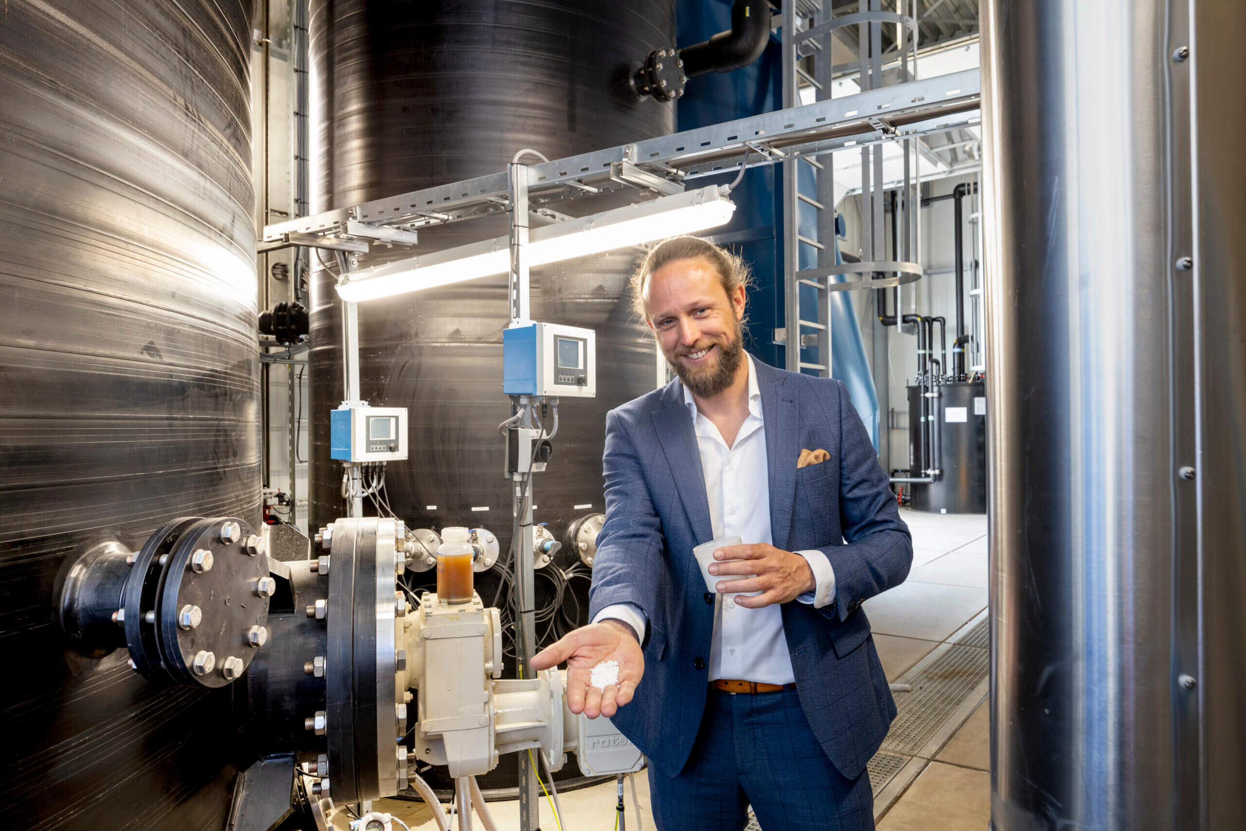 In samenwerking met Eekels Technology en Vicoma Consultancy & Engineering heeft Paques Biomaterials het extractieproces ‘vertaald in gangbare technische oplossingen’. Froeling vervolgt: “Het halffabricaat dat in Dordrecht is geproduceerd gaat dus naar Emmen, waar met behulp van een groen oplosmiddel het PHA als poeder uit dit slib geëxtraheerd wordt. Het is een duurzaam proces, want het gebuikte oplosmiddel wordt in een gesloten circuit telkens hergebruikt. De overgebleven, van PHA ontdane, biomassa wordt gedroogd en kan worden ingezet om duurzame energie te produceren. In de toekomst verwachten we meerdere productielocaties in Nederland, bij zowel de zuiveringen van waterschappen als bij industrielocaties.”