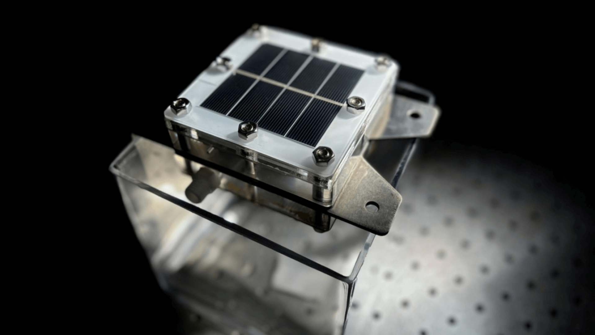 Een capillaire lont brengt een dunne waterfilm in contact met het zonnepaneel. Die film warmt snel op, verdampt en wordt gezuiverd. Daarna gaat het water naar de elektrolyser, waar het wordt gesplitst.
