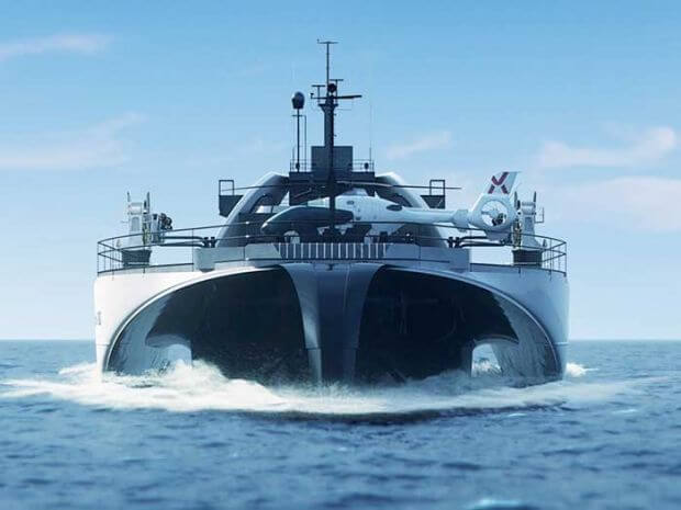 Het Japanse bedrijf Power X hoopt de elektriciteit van windparken op zee op een opmerkelijke manier aan land te krijgen: met een schip vol batterijen. In 2025 hoopt het zijn eerste Power ARK 100 af te hebben. Een 100,5 m lange en 21,9 m brede trimaran (2200 DWT) met daarop 100 accu’s, die samen 222 MWh kunnen opslaan. Het schip moet 300 km kunnen varen op elektriciteit en eventueel deels op biodiesel.