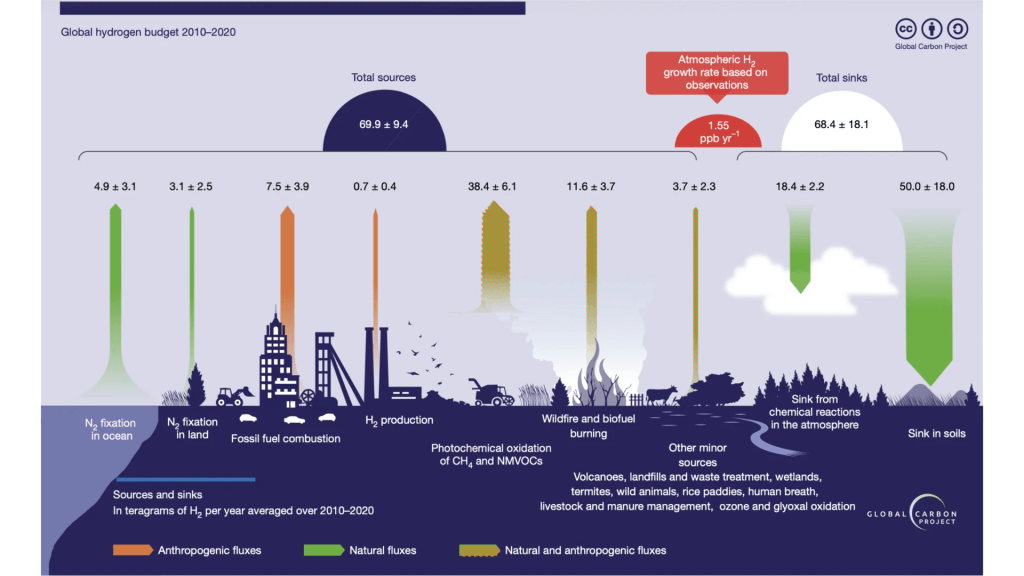 De stijging van waterstof in de atmosfeer is voor een groot deel menselijk veroorzaakt. Tussen 1990 en 2020 groeiden de emissies vooral door de oxidatie van methaan zelf. Deze reactie produceert waterstof, die op zijn beurt de afbraak van methaan vertraagt – een klassieke versterkende feedbackloop.