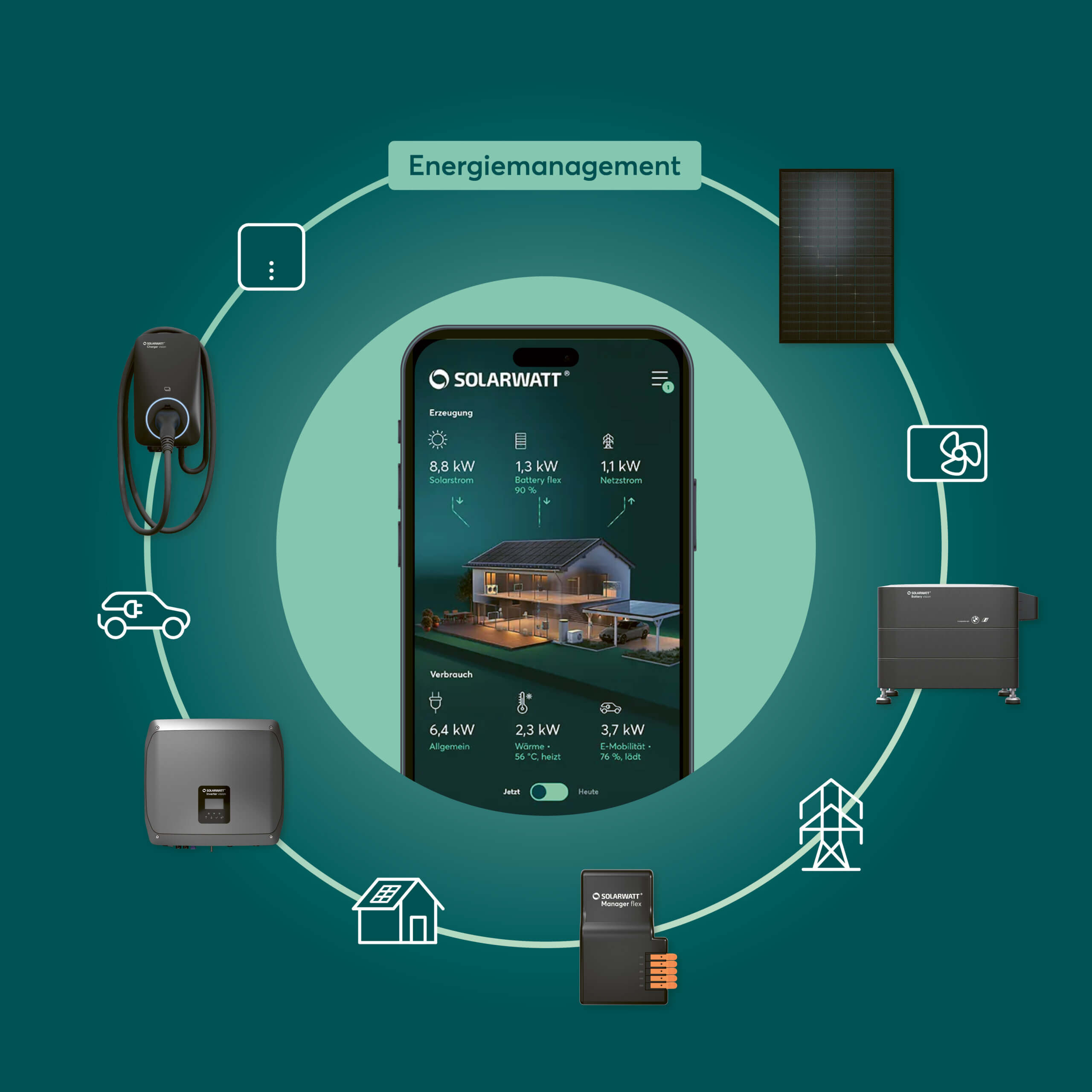 Het nieuwe systeem bestaat uit verschillende onderdelen die naadloos samenwerken. De combinatie van hoogwaardige glas-glas zonnepanelen, een slimme laadpaal (Charger Vision), een krachtige thuisbatterij (Battery Vision), een omvormer (Inverter Vision) en een energiemanager (Energy Manager Flex) maakt dit mogelijk. Deze componenten zijn ontwikkeld met het oog op flexibiliteit: hoewel het systeem optimaal presteert met Solarwatt-onderdelen, kunnen ook componenten van andere merken geïntegreerd worden dankzij het open smart grid-protocol.