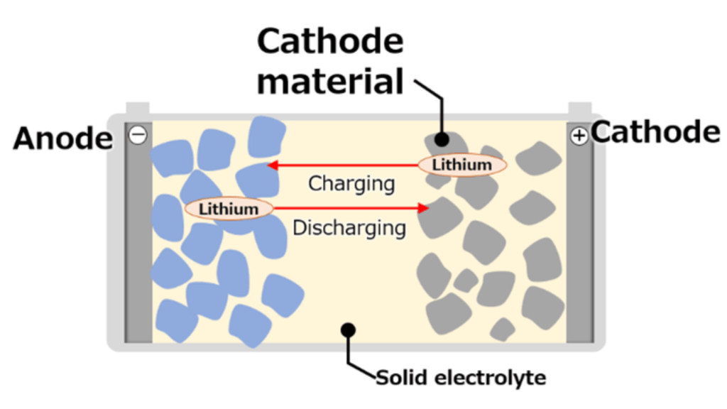 Opbouw van een all-solid-statebatterij: vaste elektrolyt en robuuste kathodematerialen vormen de kern van Toyota’s strategie voor next-gen EV-batterijen. © Toyota