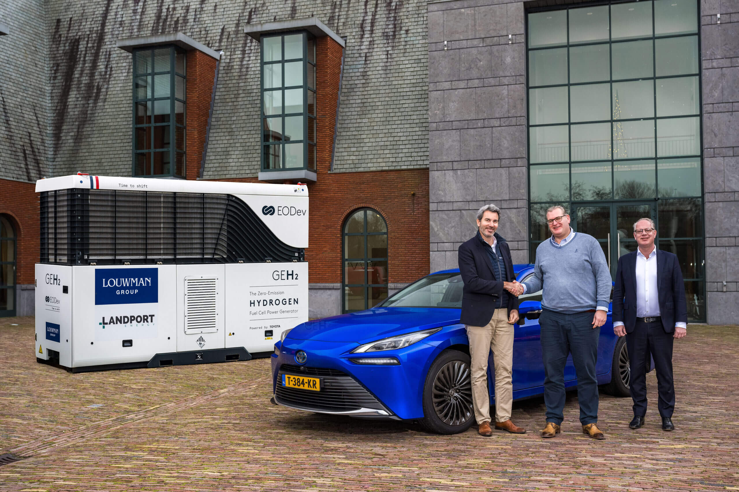 Toyota Nederland/Landport en EODev, een Frans bedrijf gespecialiseerd in waterstofoplossingen, hebben een overeenkomst gesloten om de EODev GEH2® Hydrogen Power Generator op de Nederlandse markt te brengen. Deze generator maakt gebruik van de brandstofceltechnologie die Toyota al toepast in zijn waterstofauto’s, zoals de Mirai. De generator is emissie- en geluidloos en kan op verschillende terreinen worden ingezet, zoals de bouw, de transport en de energievoorziening.