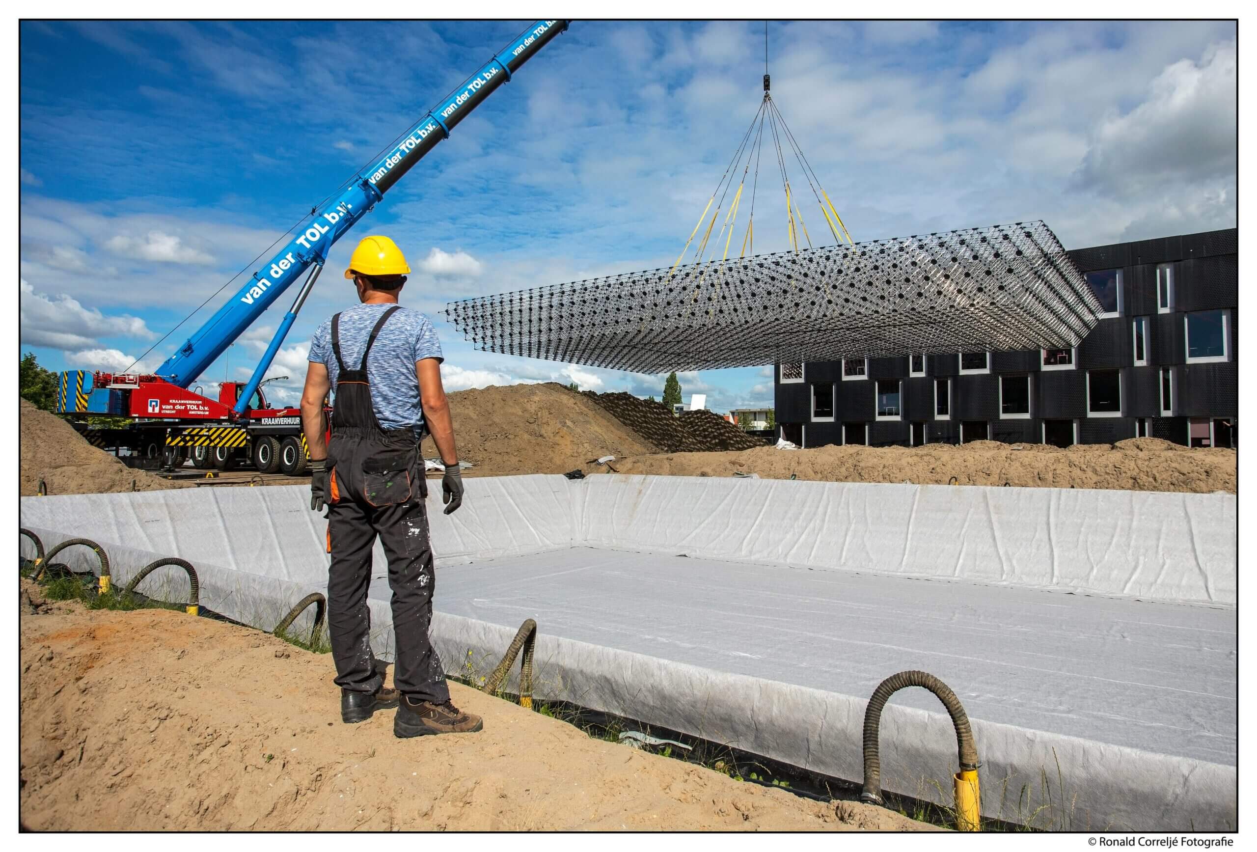 Een separate piekbuffer kan de volledige warmtevraag van 24 uur opvangen. De seizoensopslag geeft warmte uit de zomer in de winter terug. Het geheel vormt een gesloten circuit. De warmte uit de buffer wordt daarom via een warmtewisselaar overgebracht naar het warmtenet, dat de warmte distribueert naar de woningen en het schoolgebouw.