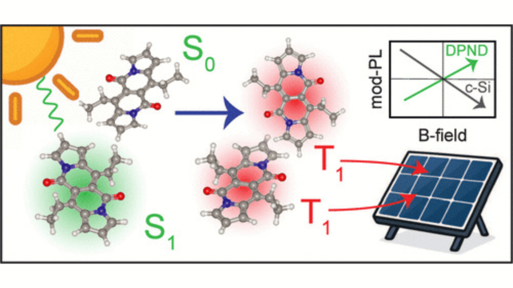 Volgens de studie, gepubliceerd in ACS Energy Letters, kan een ultradunne moleculaire laag die bovenop standaard silicium wordt “geschilderd”, het aantal ladingsdragers uit één foton verdubbelen. Daardoor kan de theoretische efficiëntie richting ongeveer 45 procent verschuiven.