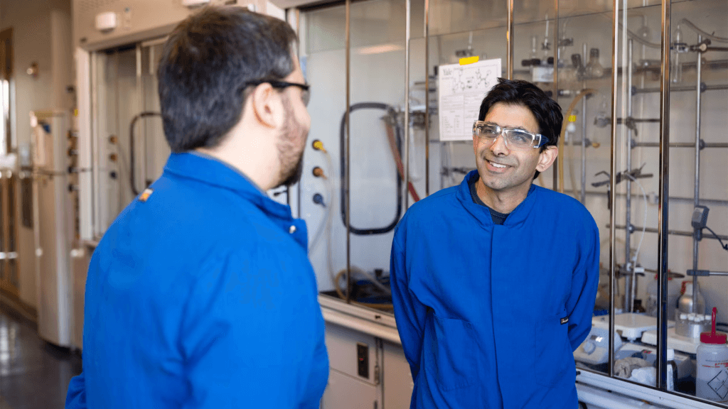 Nilay Hazari (rechts op de foto) in het lab van de Universiteit van Yale. © Yale University, Allie Barton