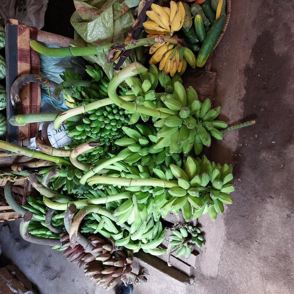 © Bart Panis. Verschillende soorten bananen op een markt in Tanzania.