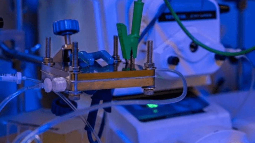Foto van de elektrochemische celopstelling in het lab van Rice University. © Jorge Vidal / Rice University